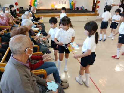 最後には、園児さんからご利用者様おひとりおひとりに、手作りのメダルをプレゼントして下さいました。