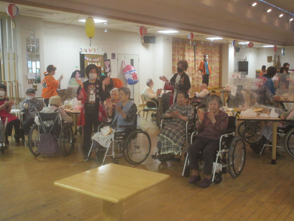 今年は屋内で特養の納涼祭を開催です