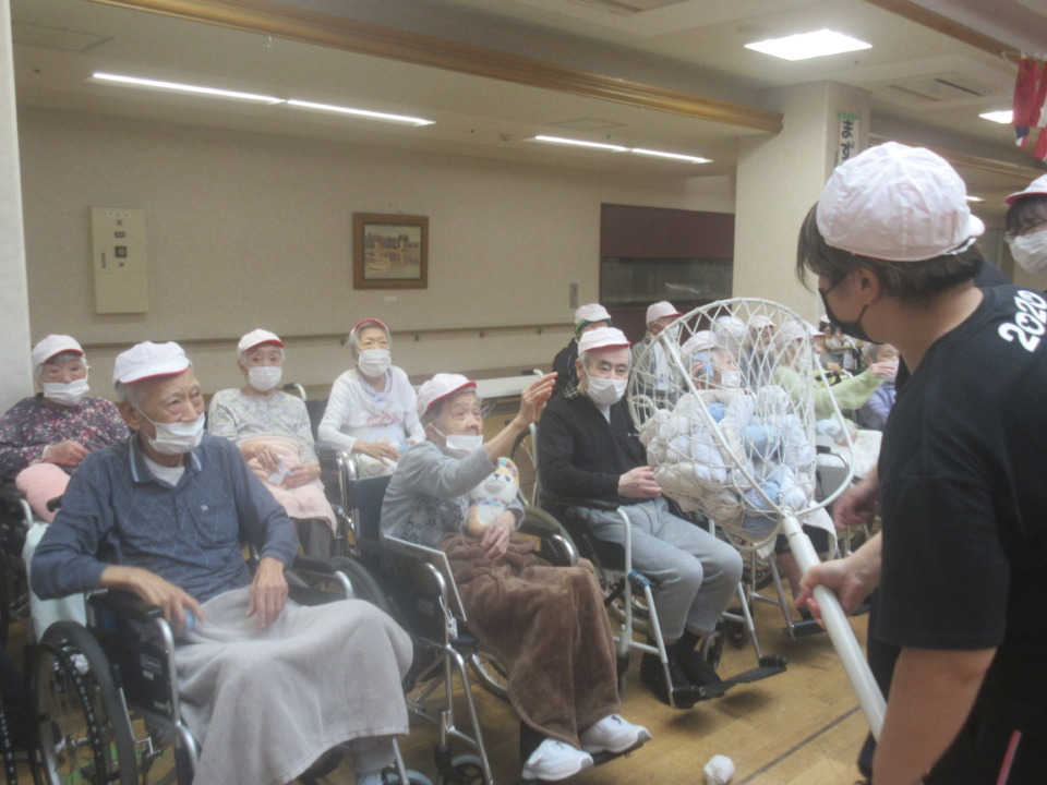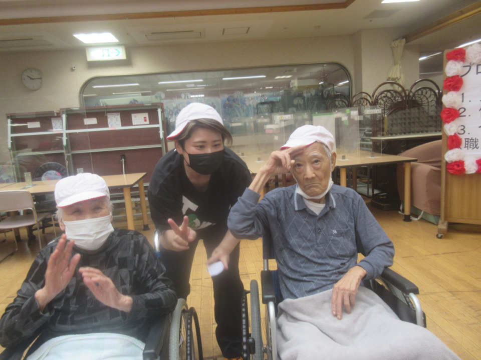 紅白帽を被って赤組・白組に分かれて楽しく