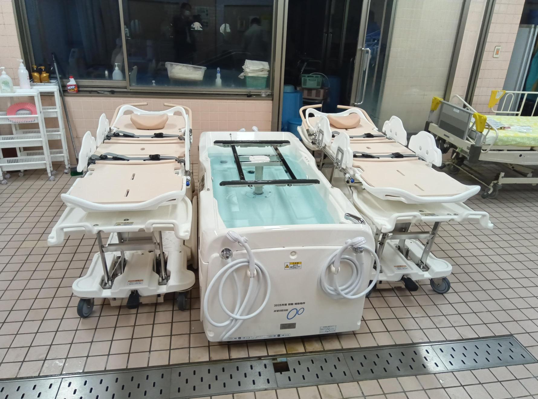 導入した特殊浴槽は、最新の技術で体位保持が困難な方でも