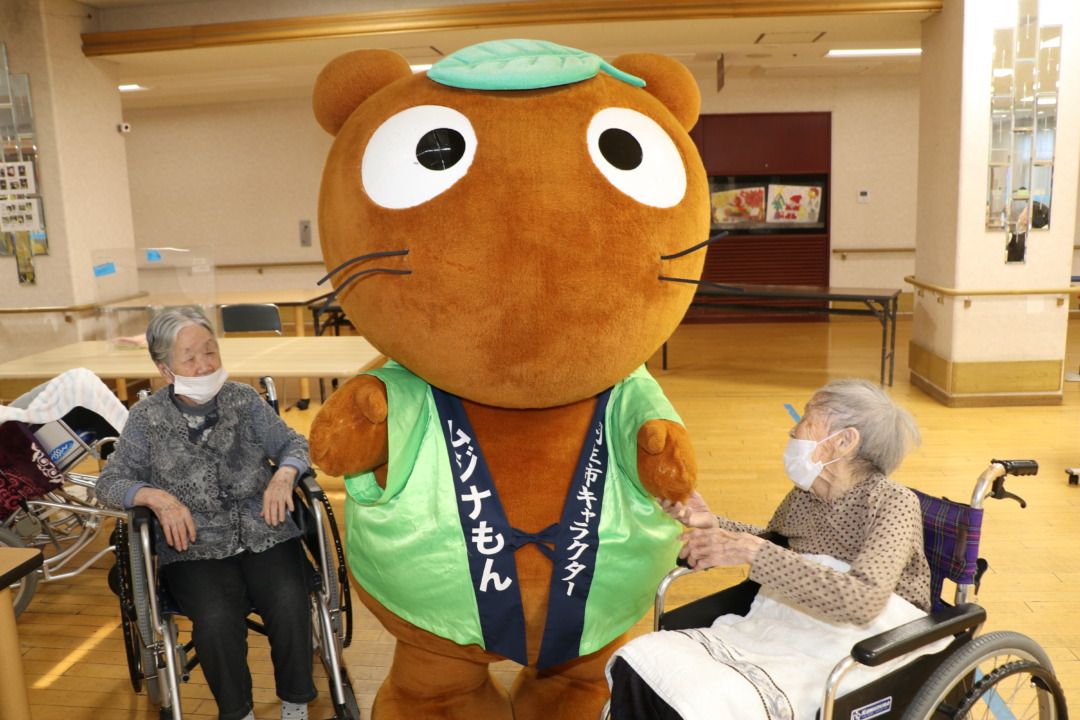 左から、ひなちゃん(鴻巣市)、ムジナもん(羽生市)、ふくちゃん(緑風苑)