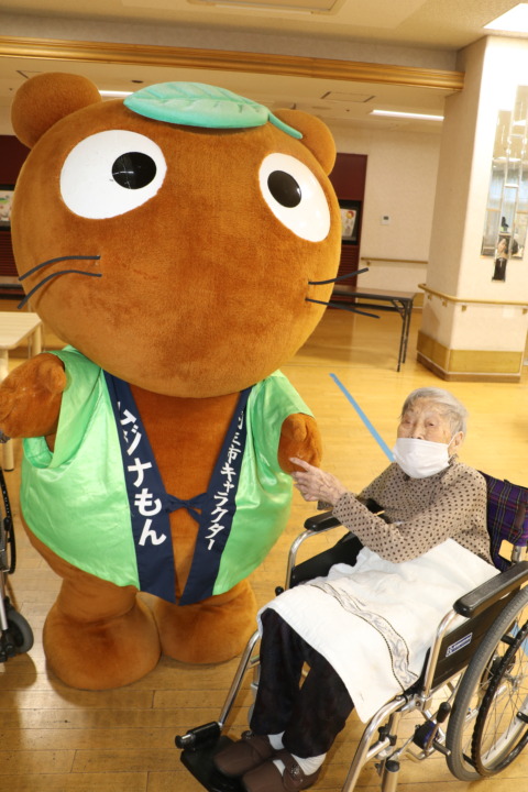 ちゃんちゃんこ、頭巾の衣装を着て頂きました(‘◇’)ゞ