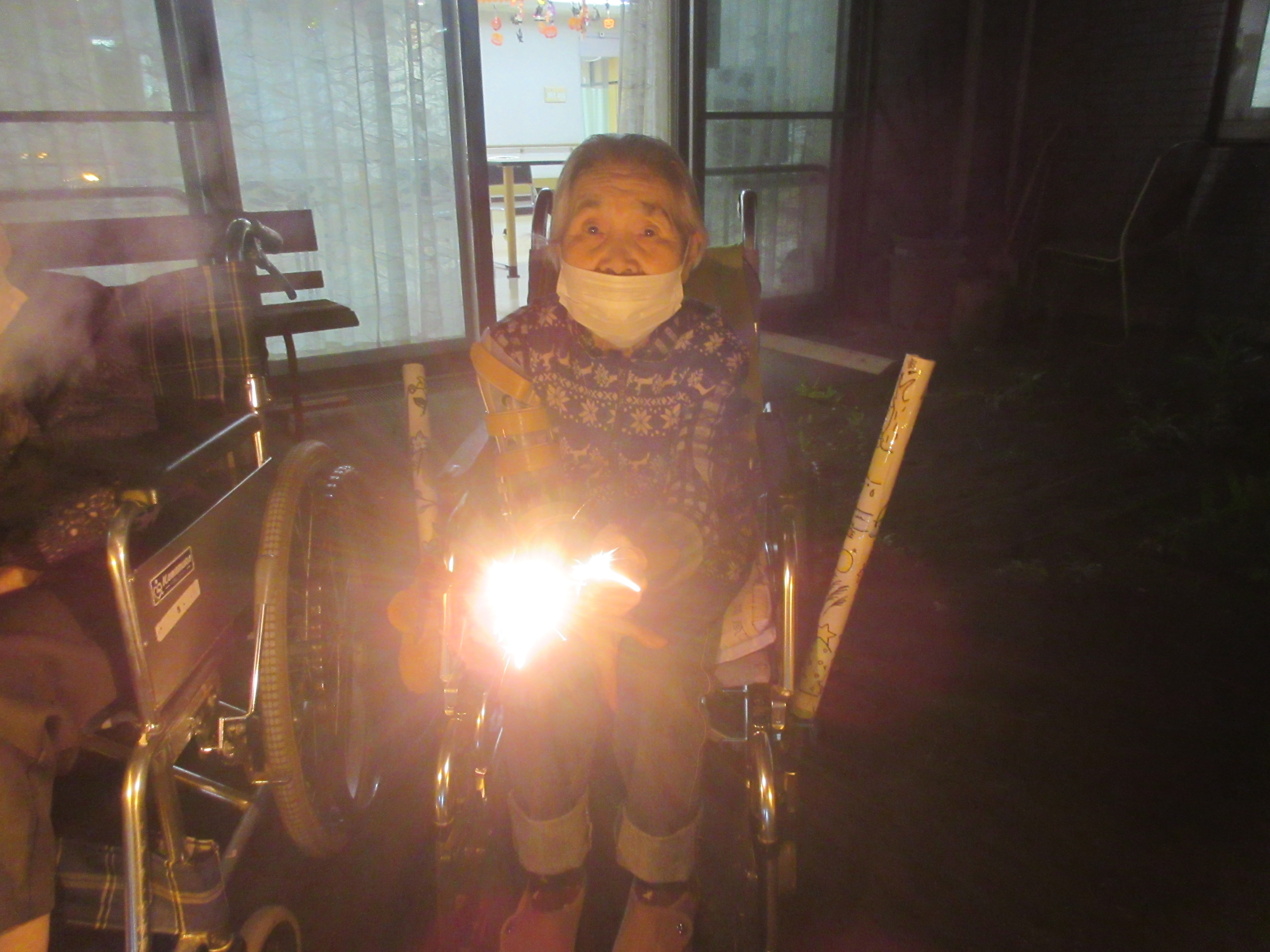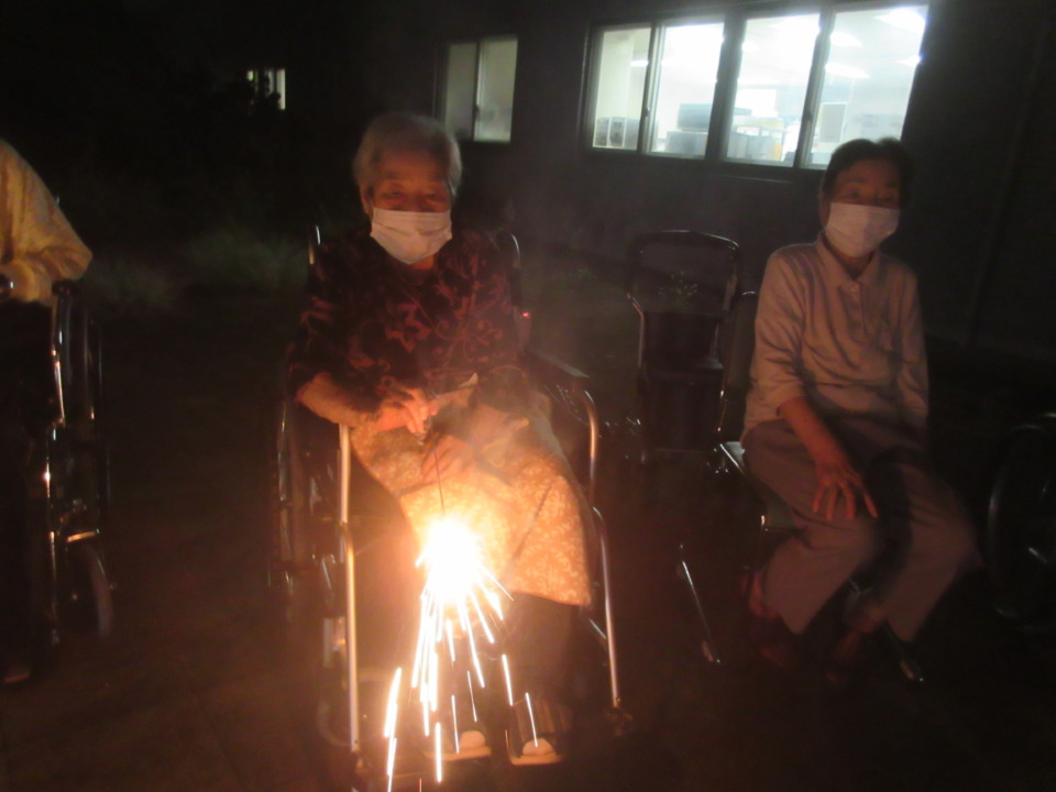中庭で花火やりました!