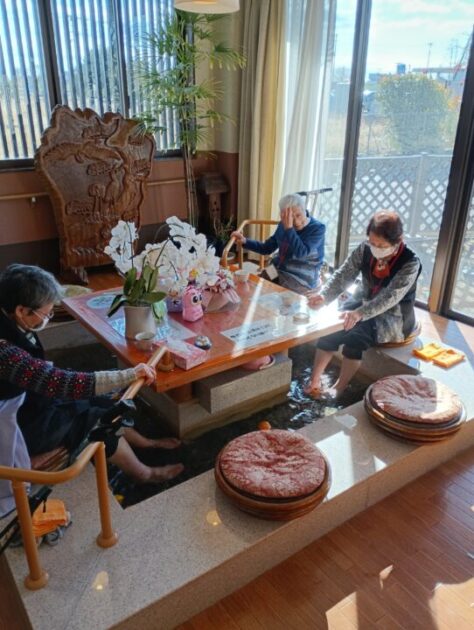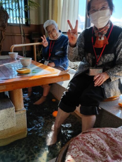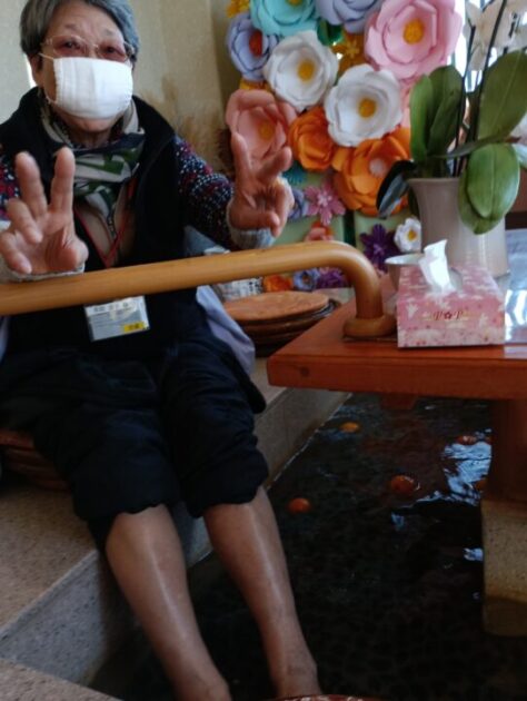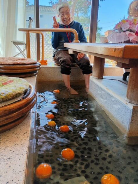 いただいた柚子は大浴場だけでなく、 今回は“足湯”にもたっぷり浮かべました。 湯面にゆらゆら揺れる黄色い実がとても可愛らしく、 香りに包まれながら足元からじんわり温まる、冬ならではの贅沢なひとときとなりました。